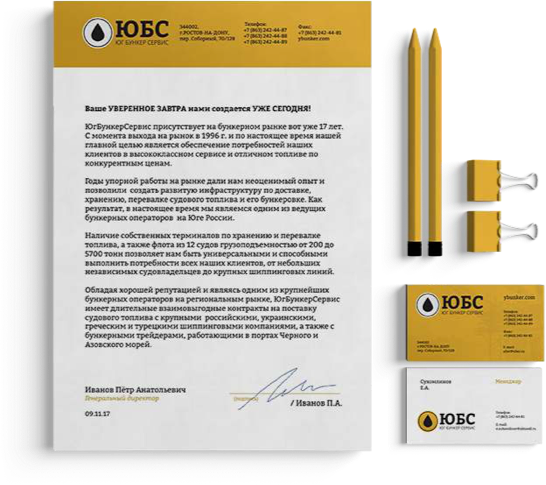 Разработка дизайн-концепции, логотипа и фирменного стиля компании «ЮгБункерСервис»